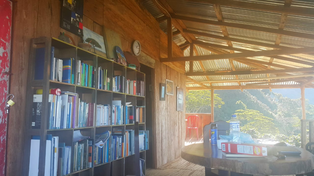 La Casa de la montaña cuenta con libros en calidad de préstamo (español, inglés y francés) para nuestros visitantes. En el puedes encontrar desde literatura, poesía y debates en temas de importancia nacional. Es un lugar privilegiado para la lectura por el entorno: tiene una brisa fría constante (está en el filo de la montaña) y es lugar de paso de centenares de pájaros. No hay ruidos diferentes a los que produce la naturaleza y el huésped puede ir a leer dentro de los cafetales o a los alrededores de la Casa de la Montaña. La tranquilidad es nuestro bien más preciado.